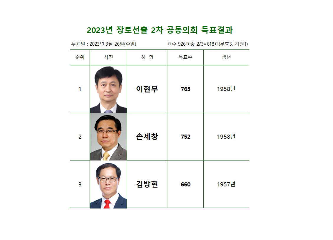 2023년 장로 10인, 안수집사 20인, 권사 50인 선출을 위한 공동의회 결과