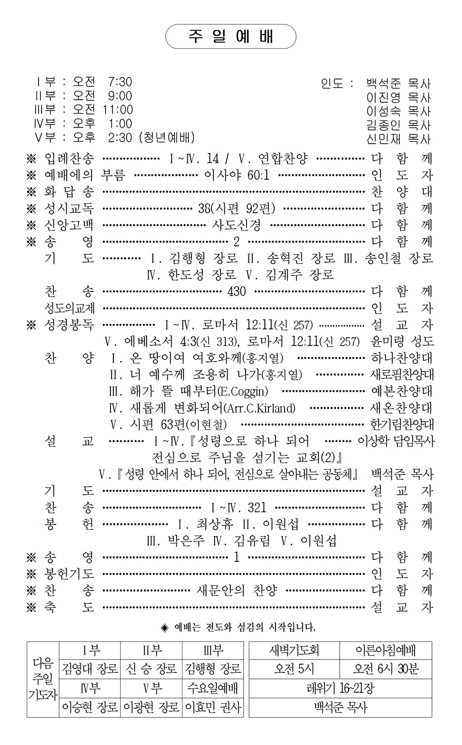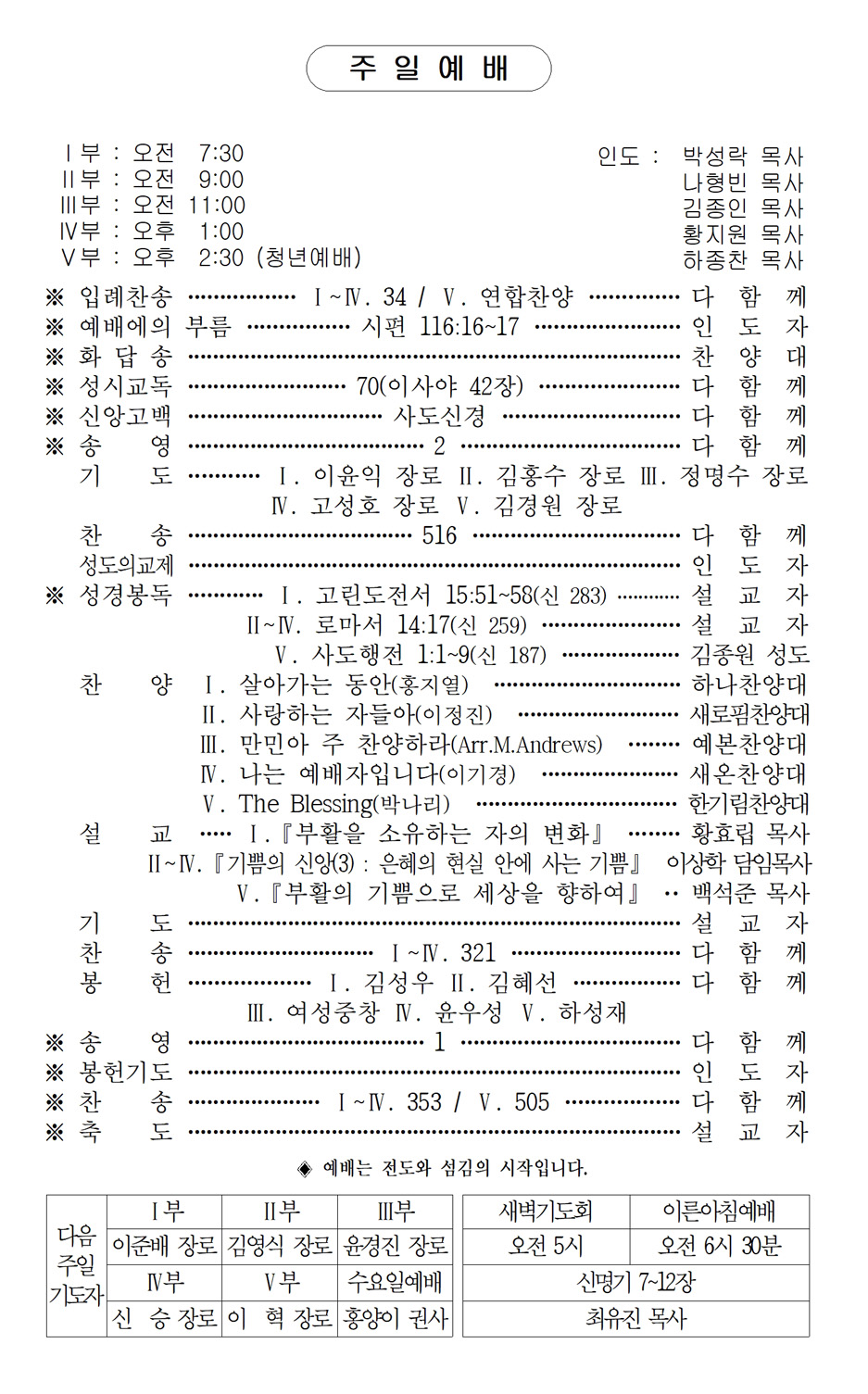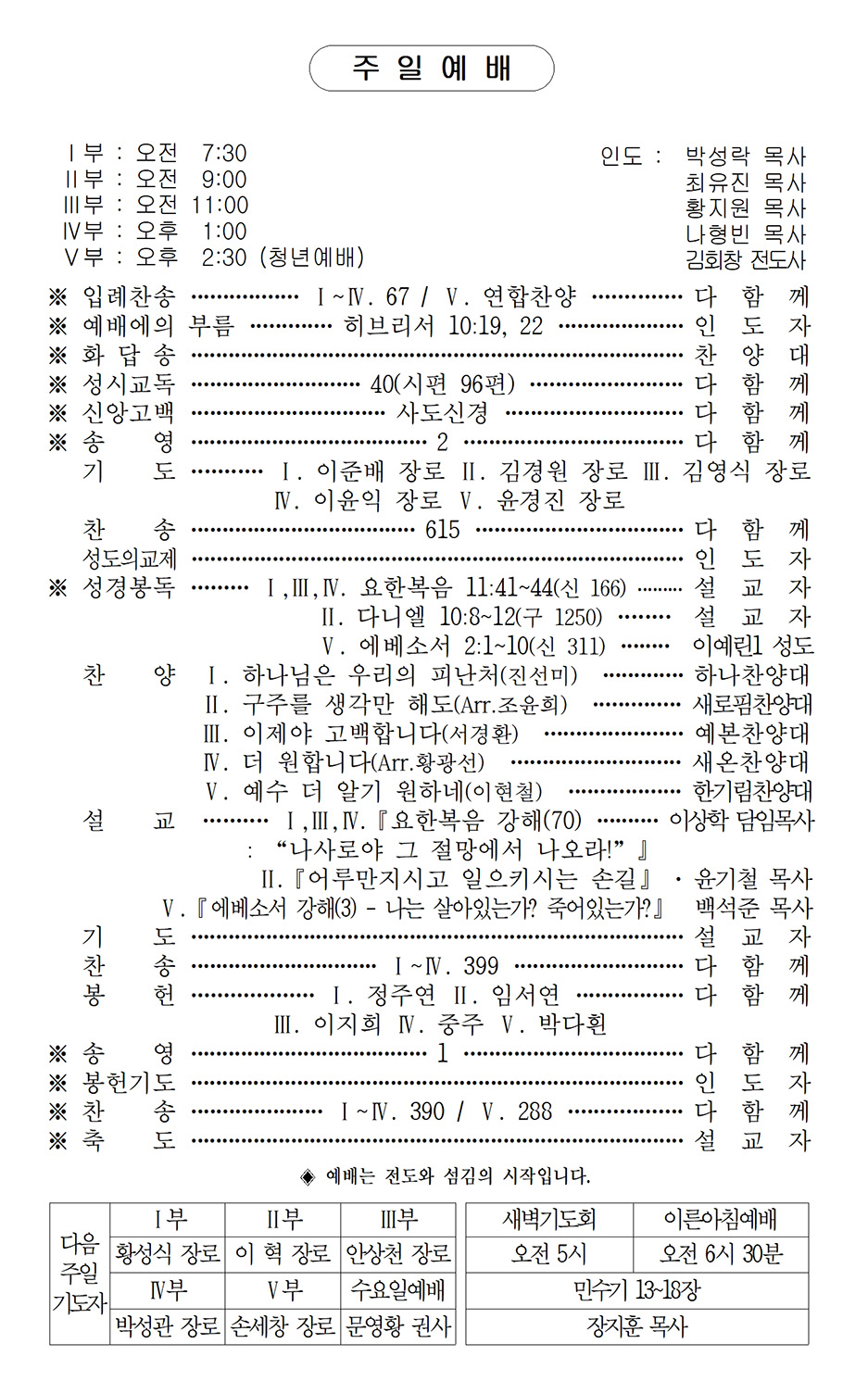 주일5부예배