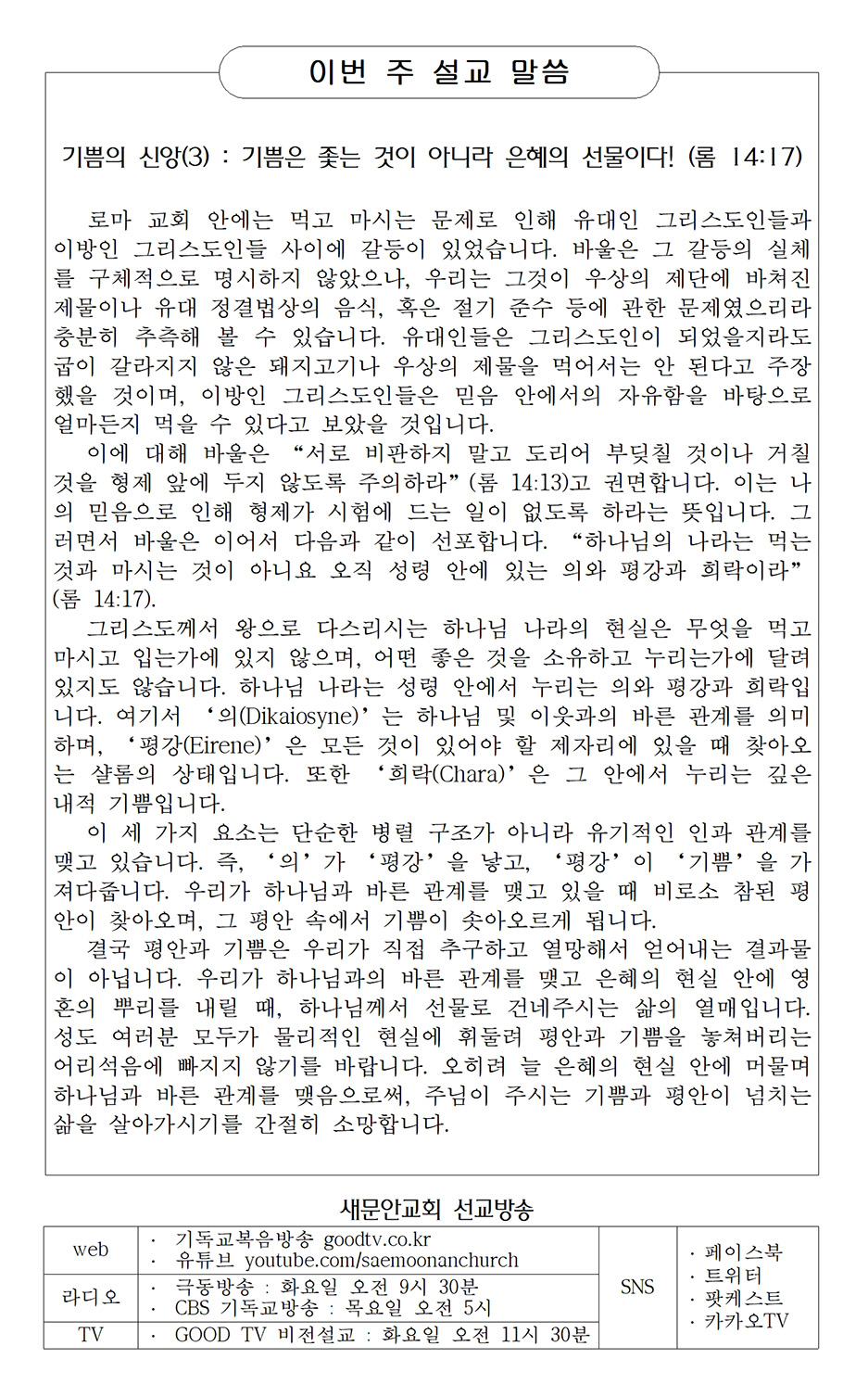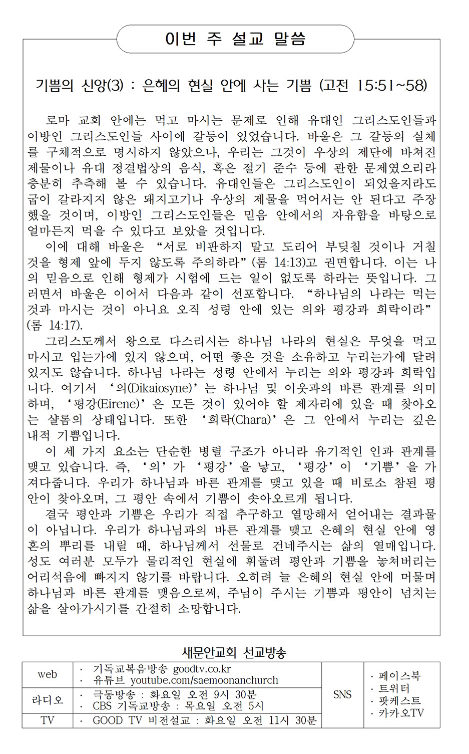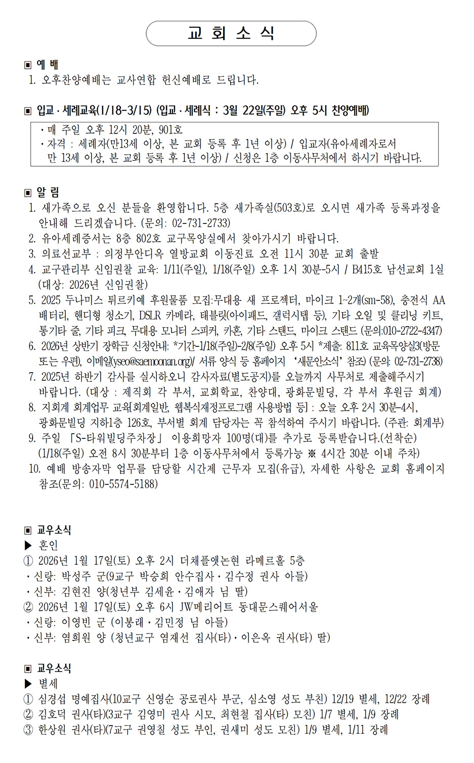 교회생활 안내