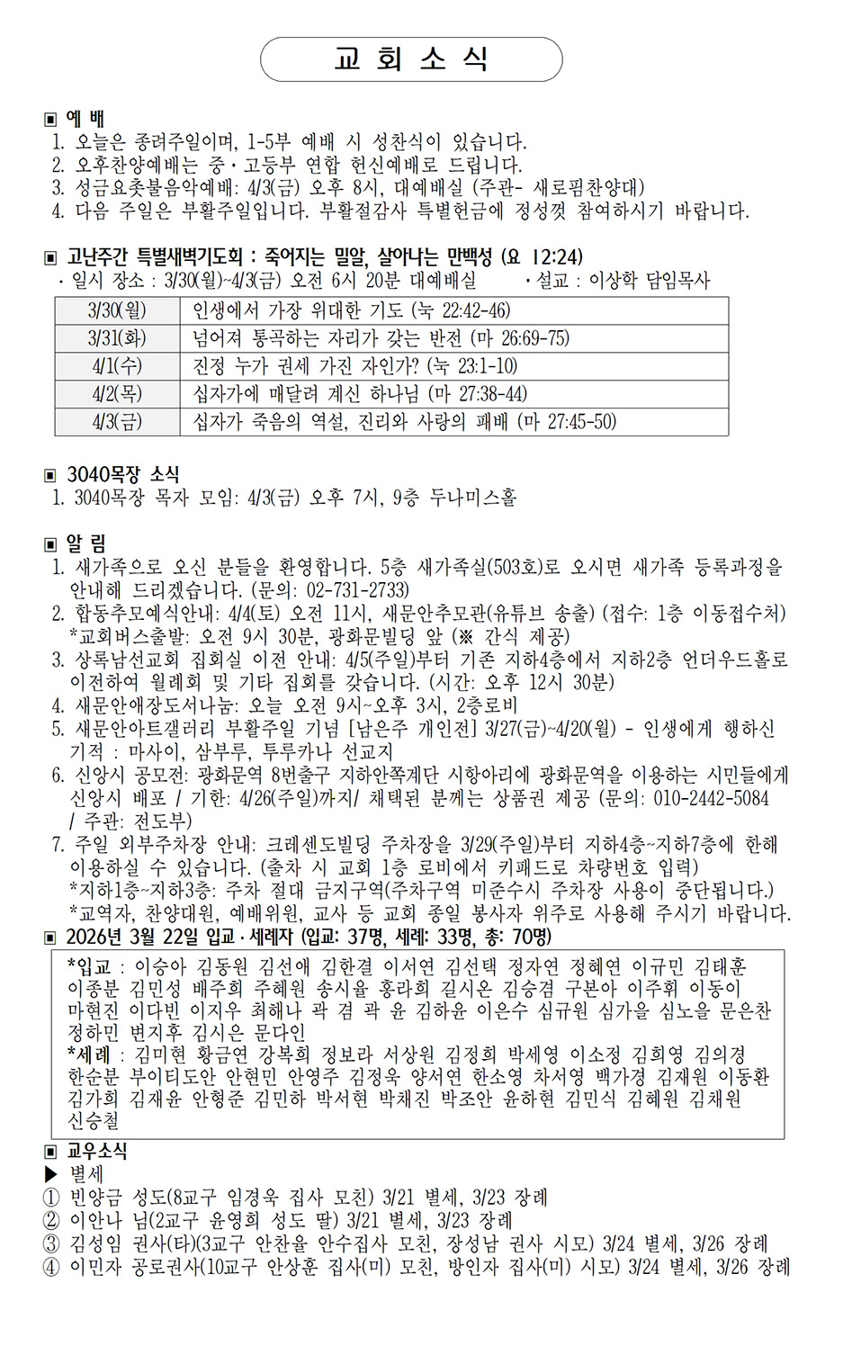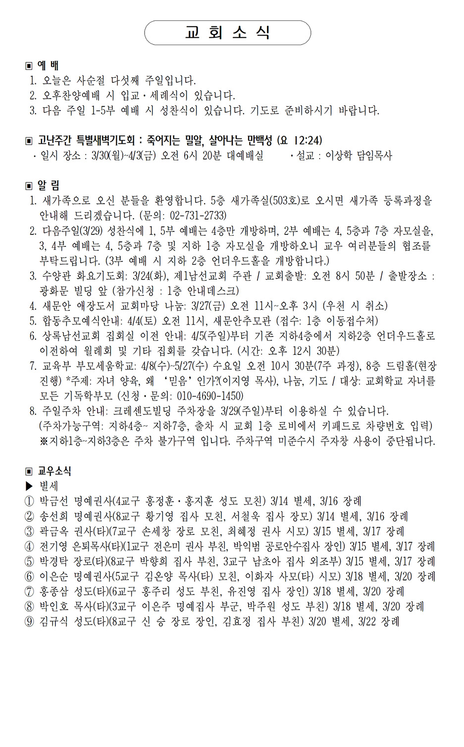 2026년 3월 1일 (3.1절 기념주일·사순...