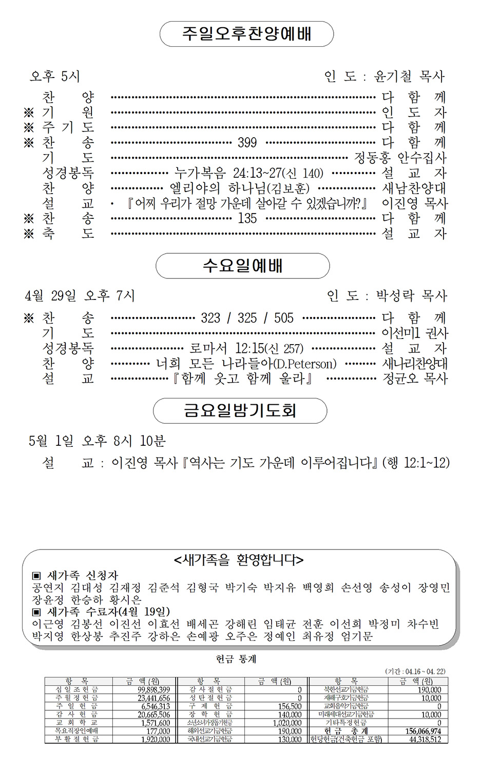 교회 일정