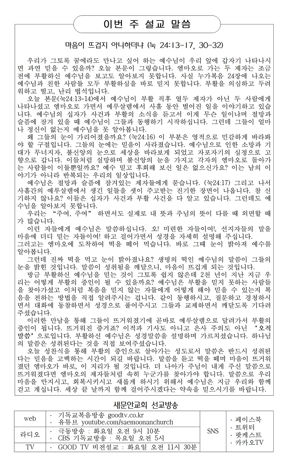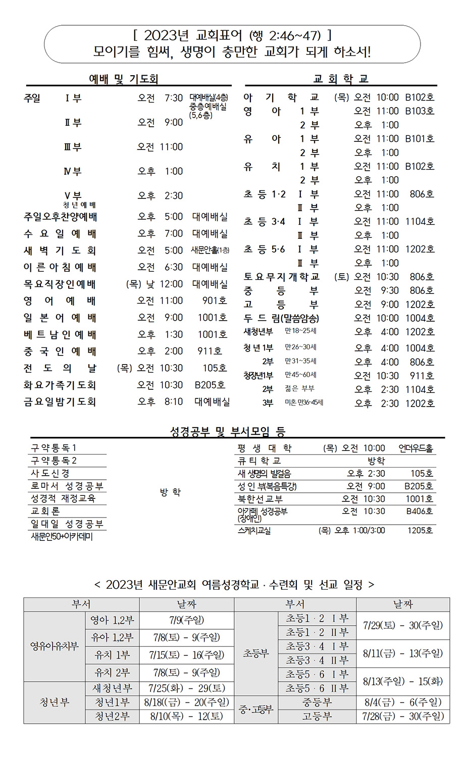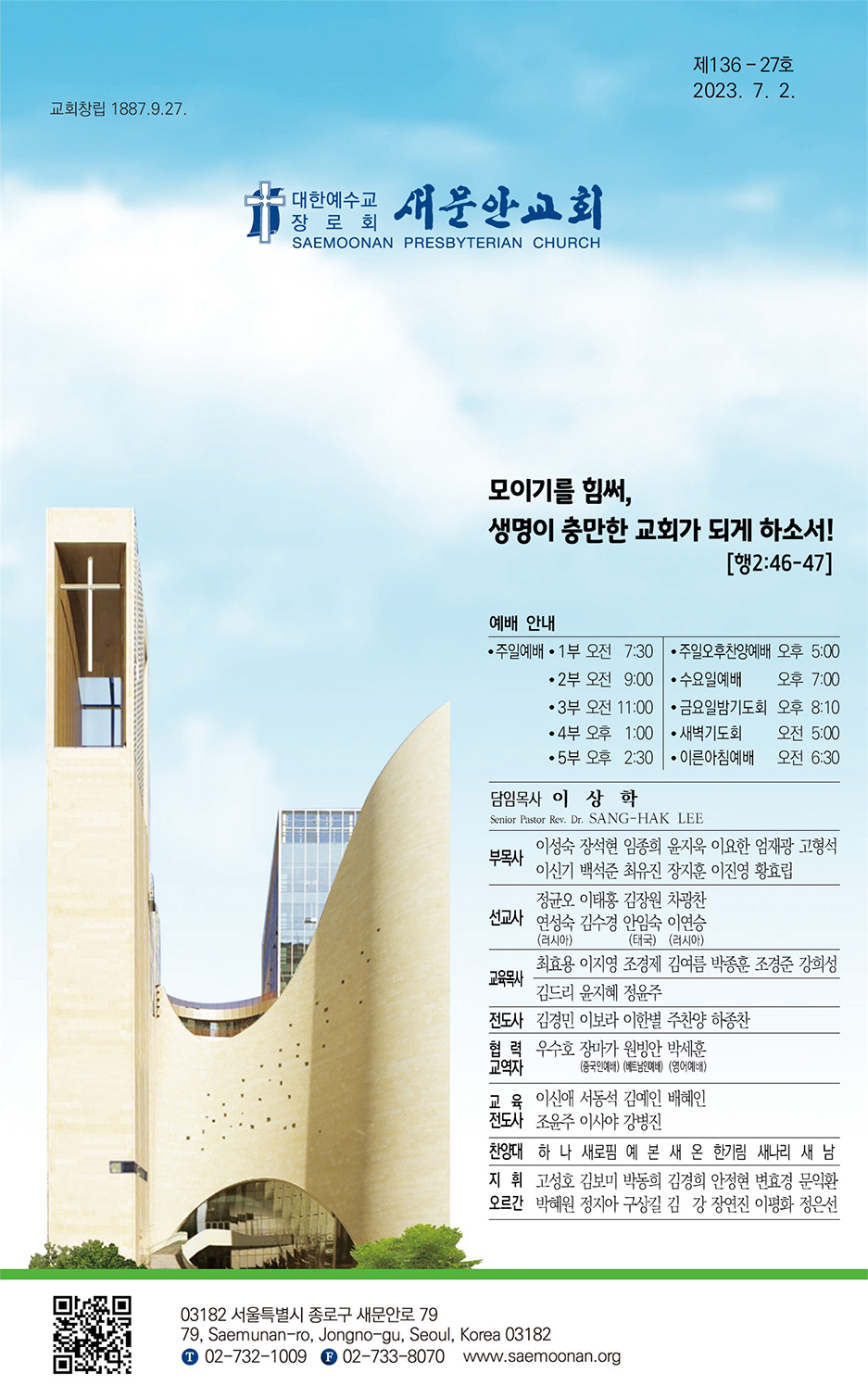 모이기를 힘써, 생명이 충만한 교회가 되게 하소서!