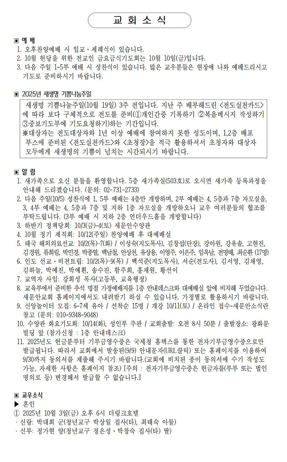 2025년 9월 21일 (교회창립주일)