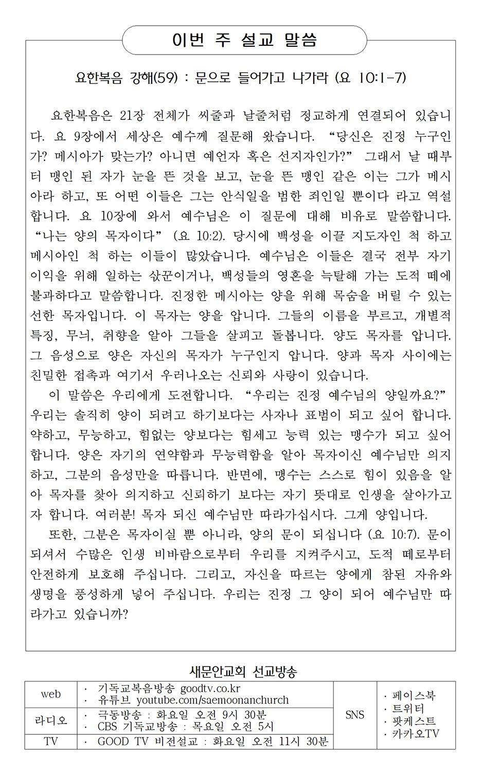 새문안 교회 표어