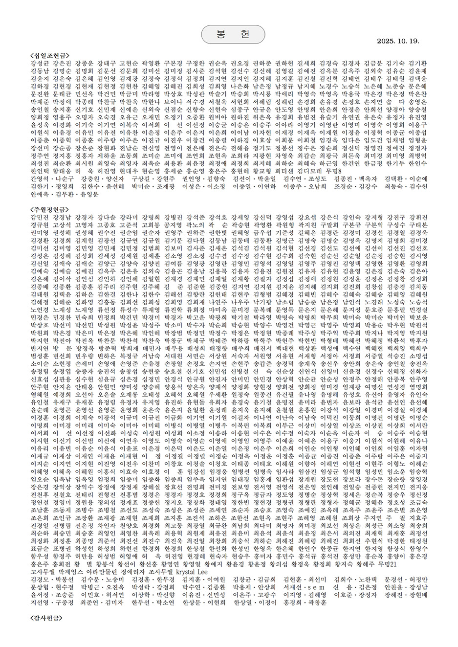 2025년 10월 19일 (기쁨나눔주일)