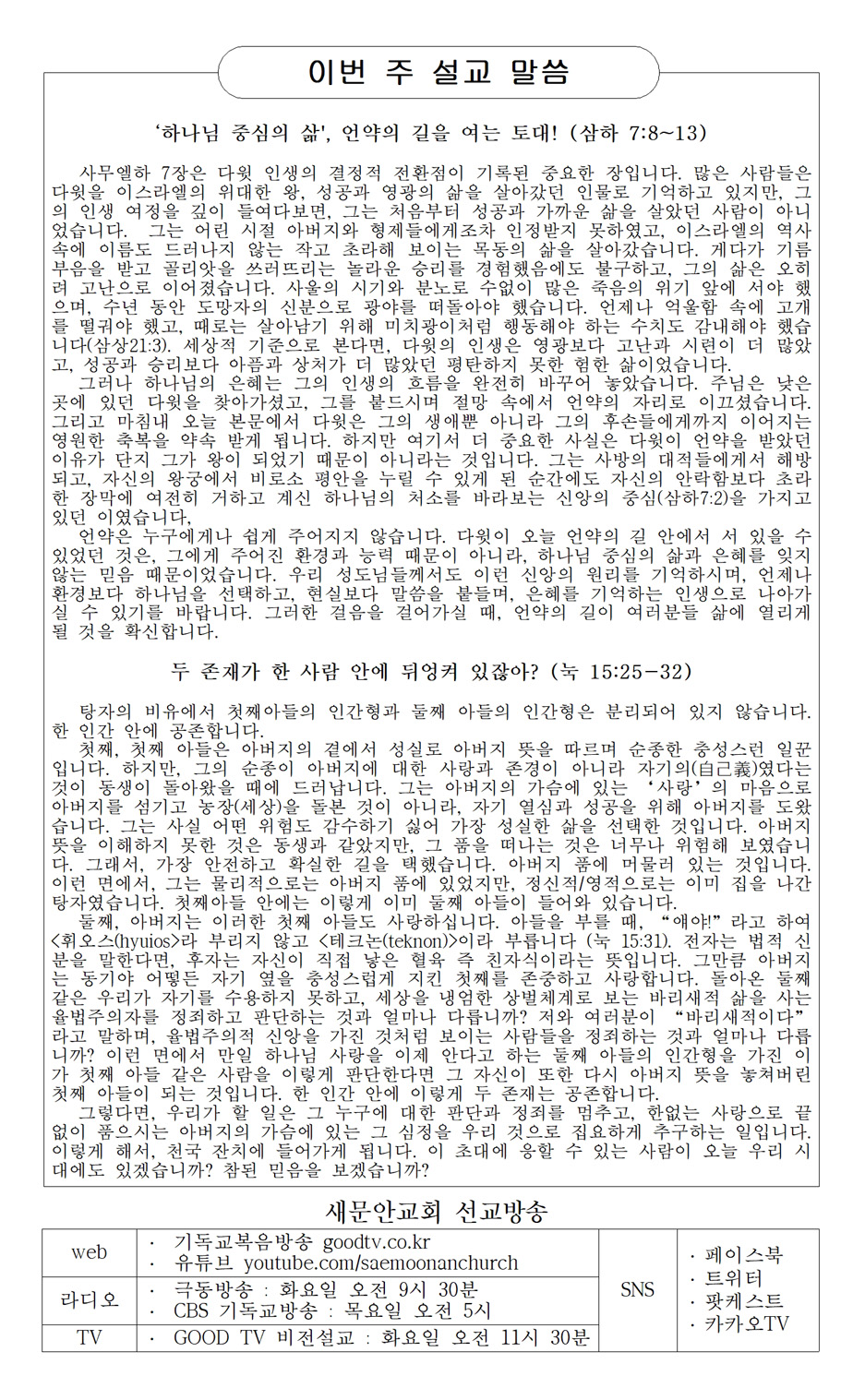 모이기를 힘써, 생명이 충만한 교회가 되게 하소서!
