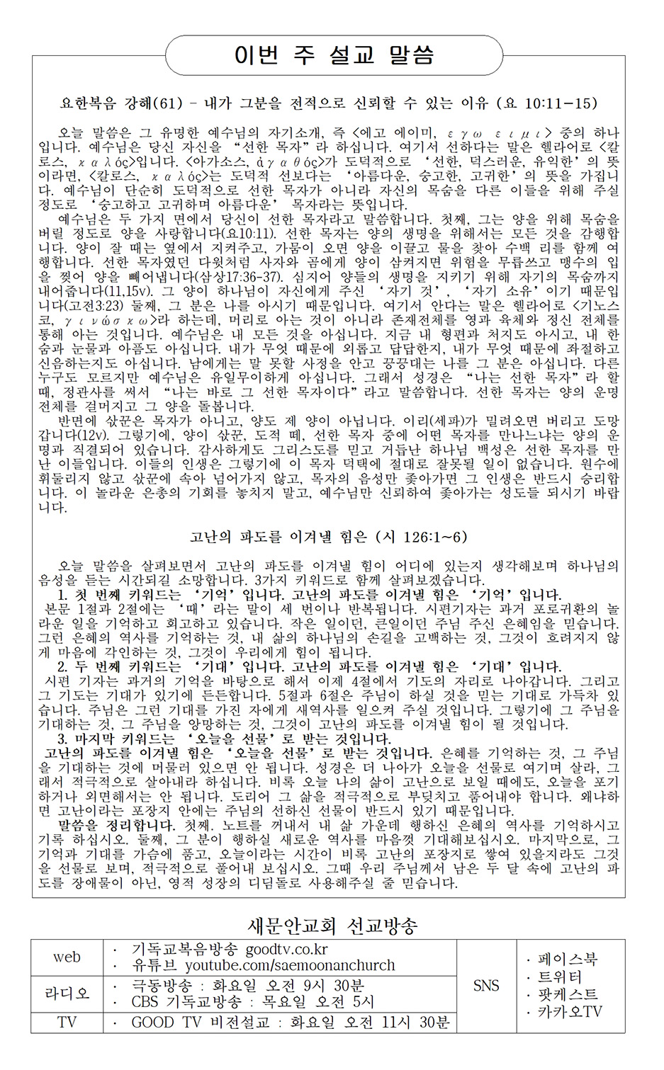 모이기를 힘써, 생명이 충만한 교회가 되게 하소서!