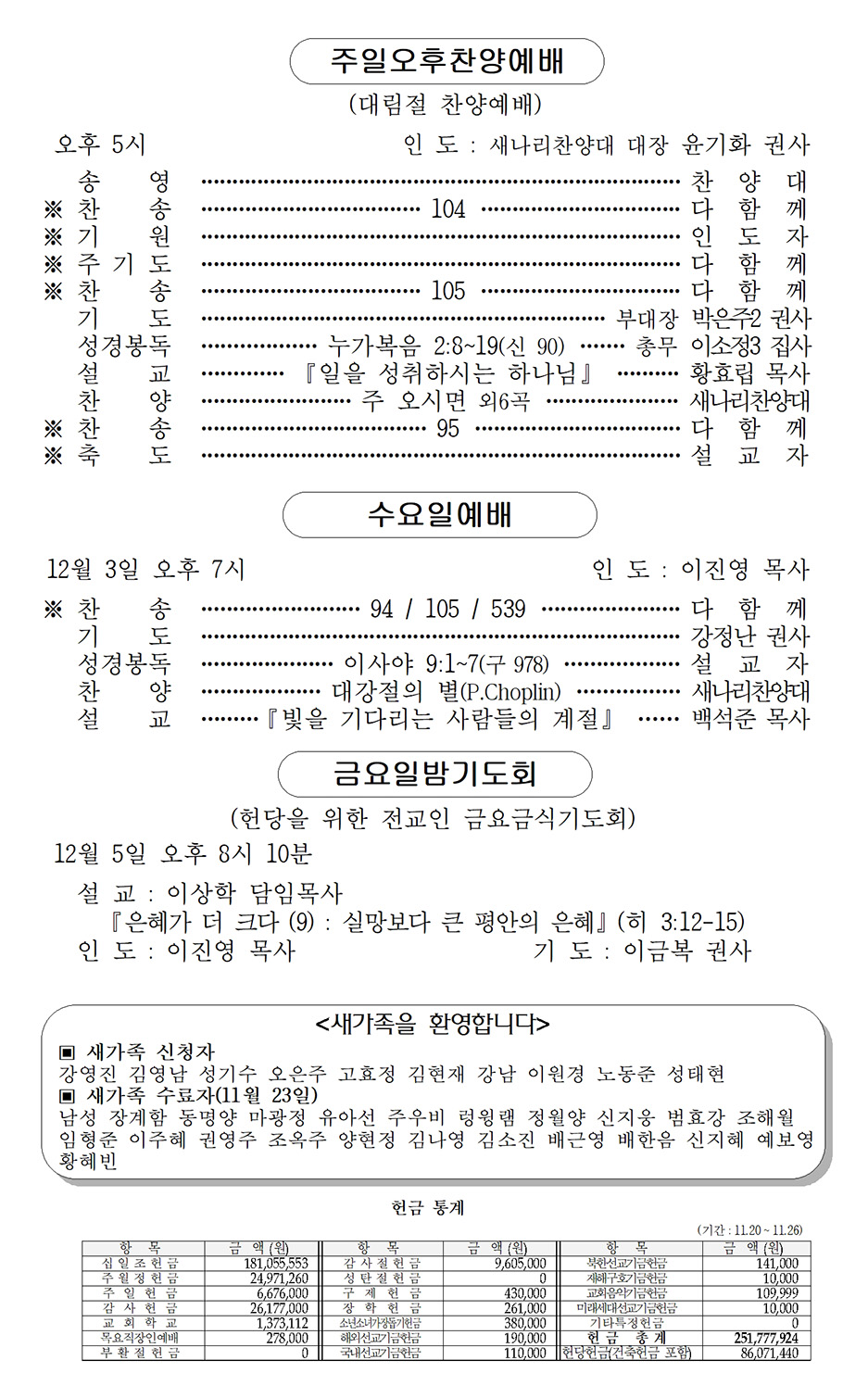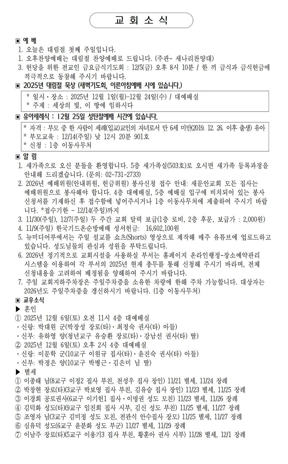 2025년 11월 16일 (추수감사주일)