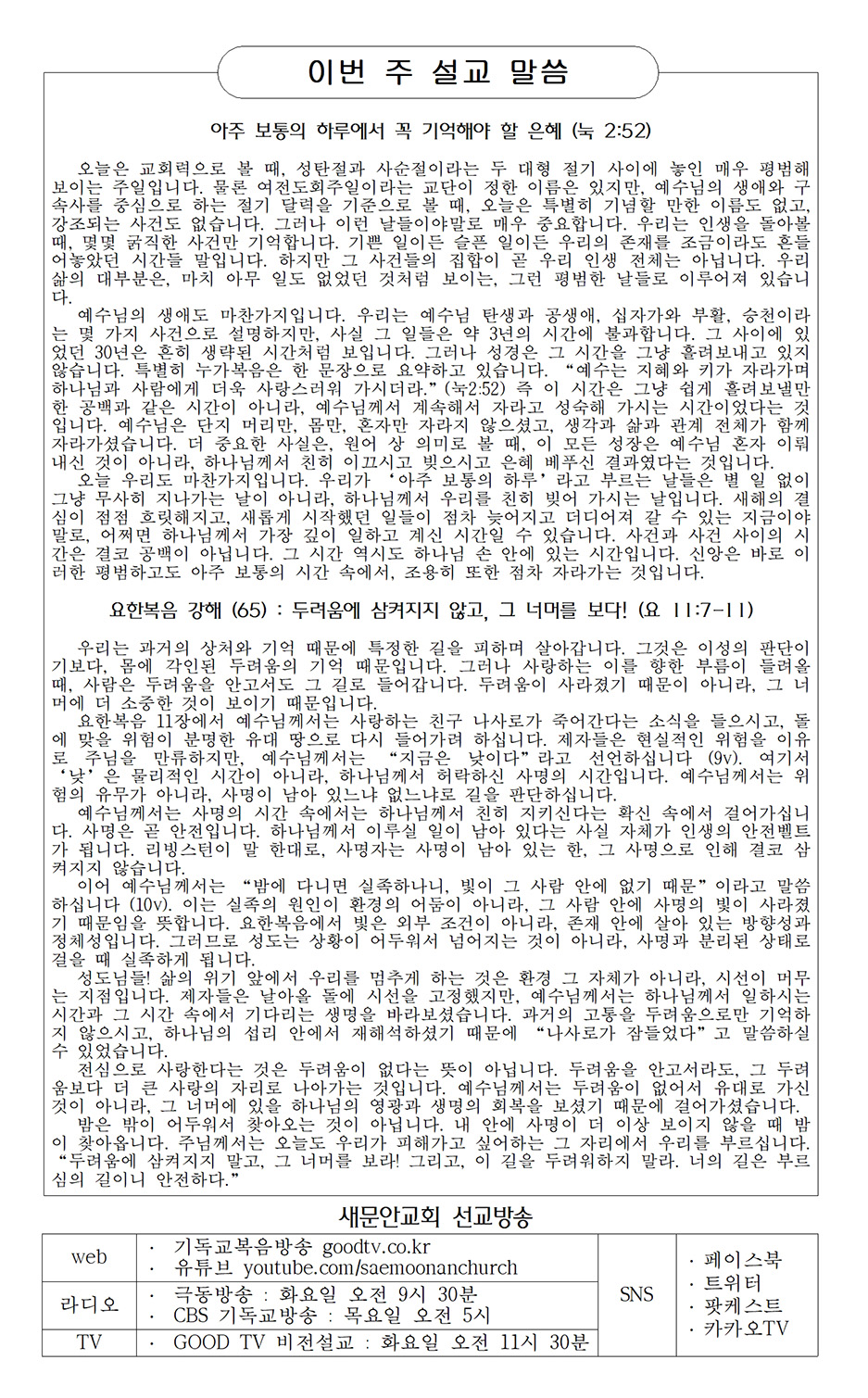 모이기를 힘써, 생명이 충만한 교회가 되게 하소서!