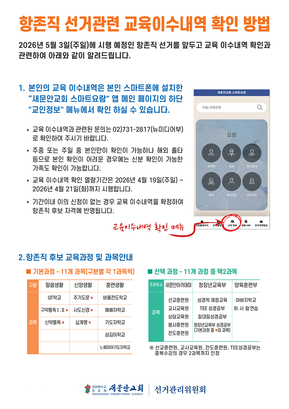 2026년 항존직 선거 전자투표 체험 및 연습 안내