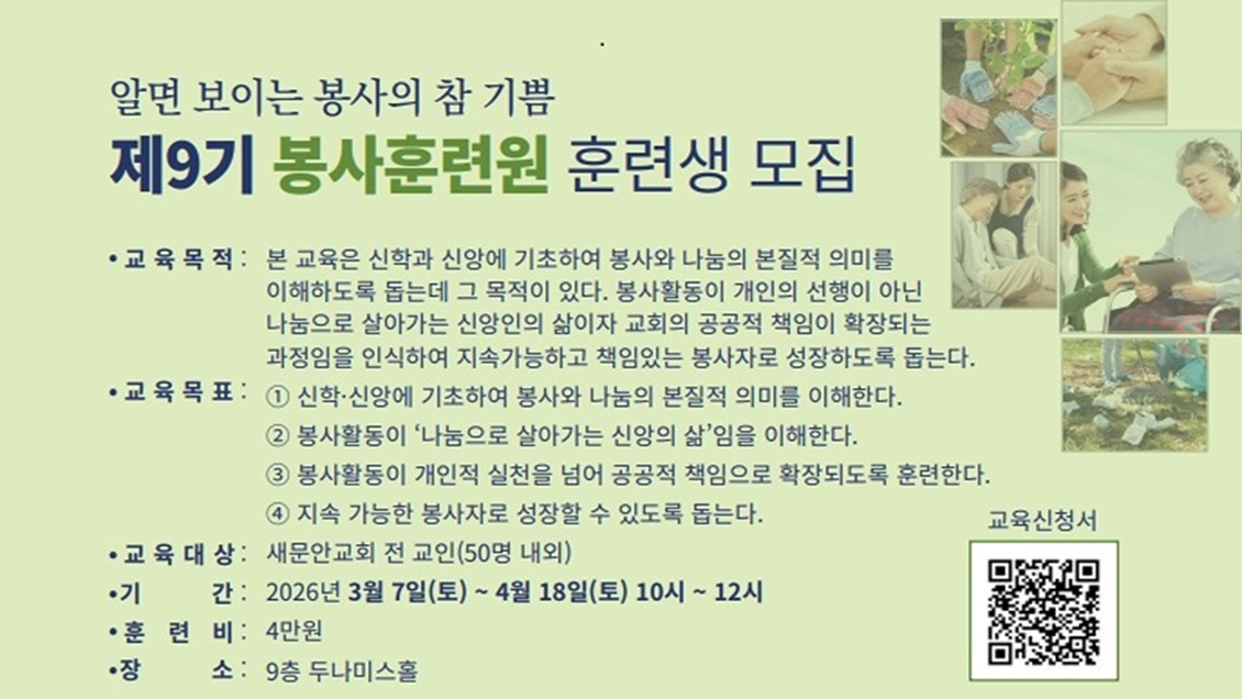 청장년교육부 새문안성경공부 안내 (2026년 1학기)