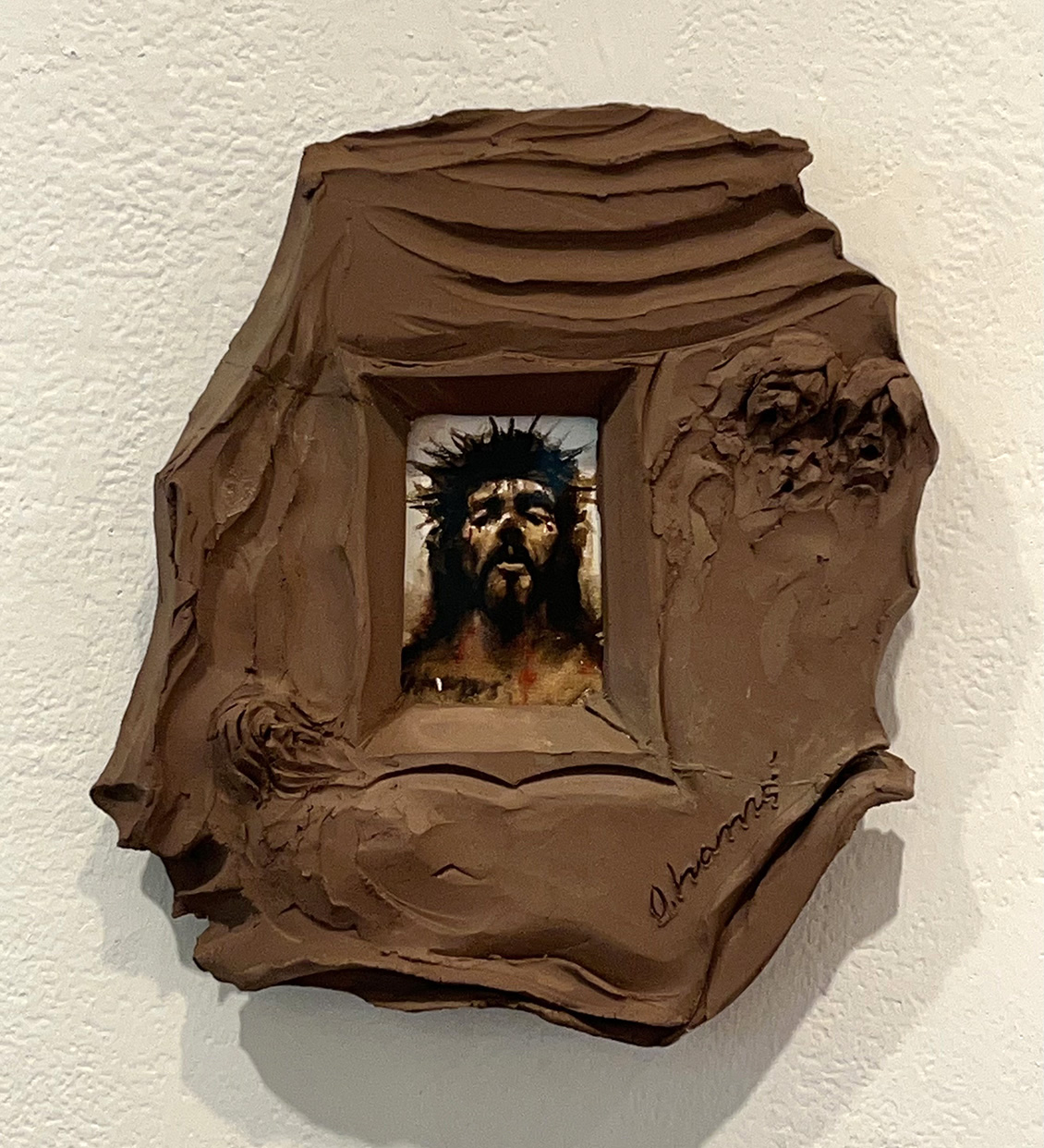 희롱당하시는 예수님, 테라코타에 아크릴 채색, 56⨉35⨉30cm, 2025