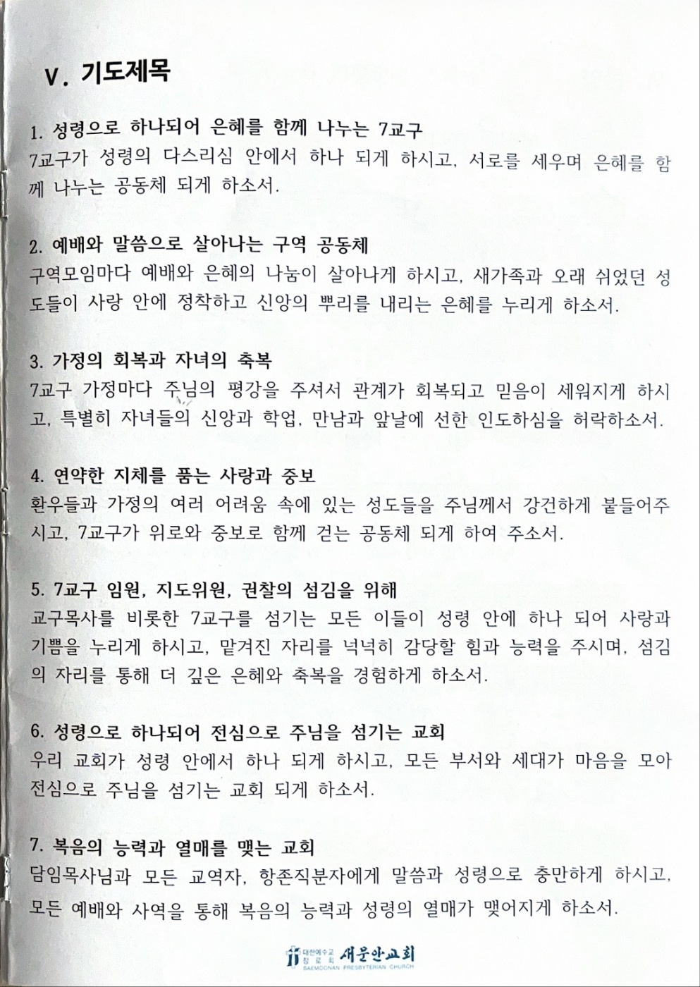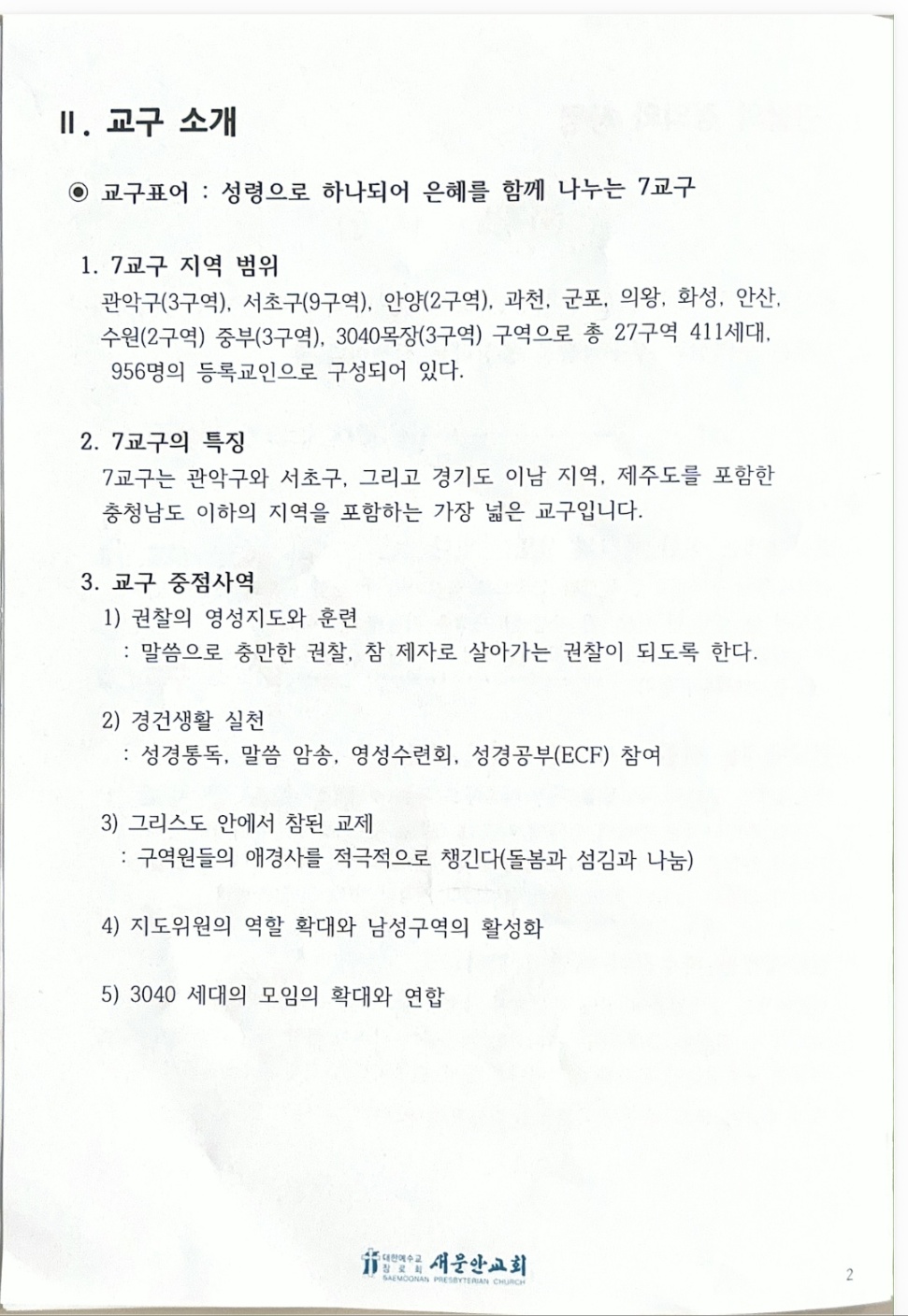 교구표어 : 성령으로 하나되어 은혜를 함께 나누는 7교구 <에베소서 4:3>