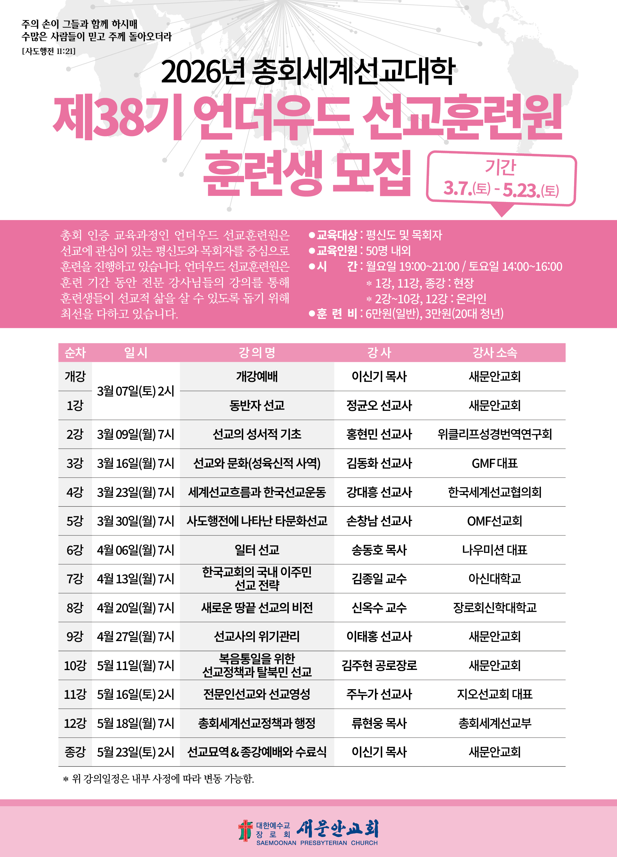 교단총회 세계선교대학 인증 과정 - [제 37기 언더우드선교훈련원] 교육훈련생을 모집합니다. 선교 현장에서 활동하시는 각 분야 전문&..