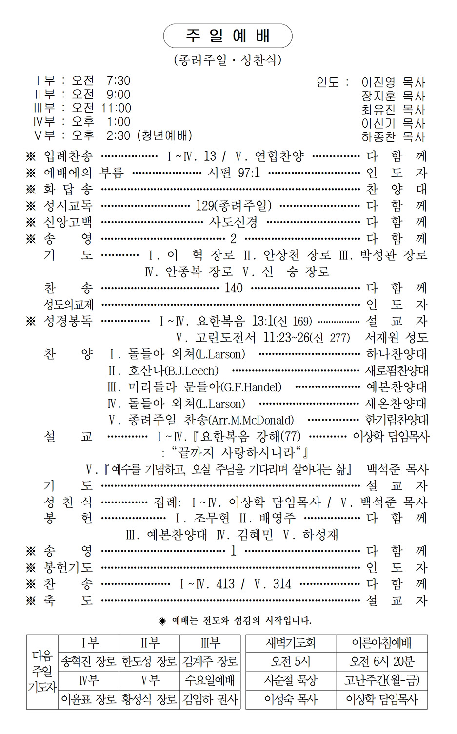 2026년 3월 29일 (종려주일·성찬식)