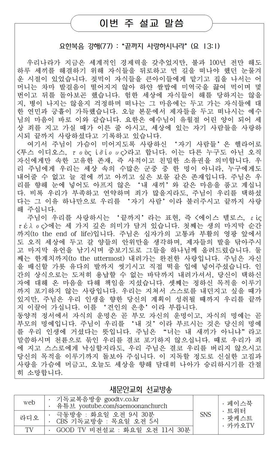 새문안 교회 표어