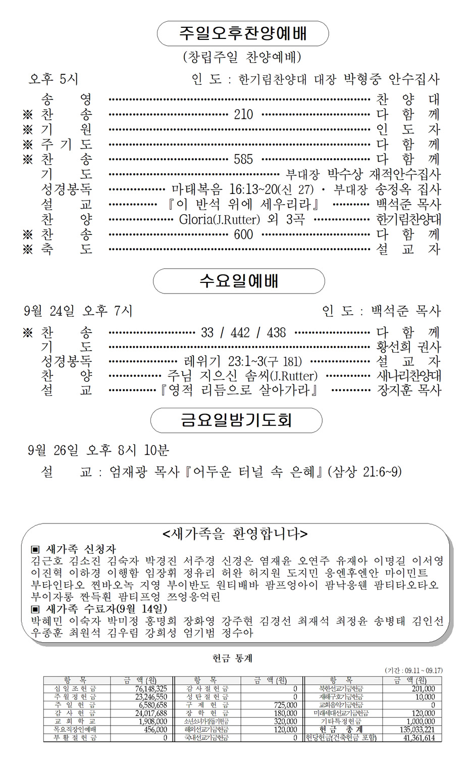 2025년 9월 21일 (교회창립주일)