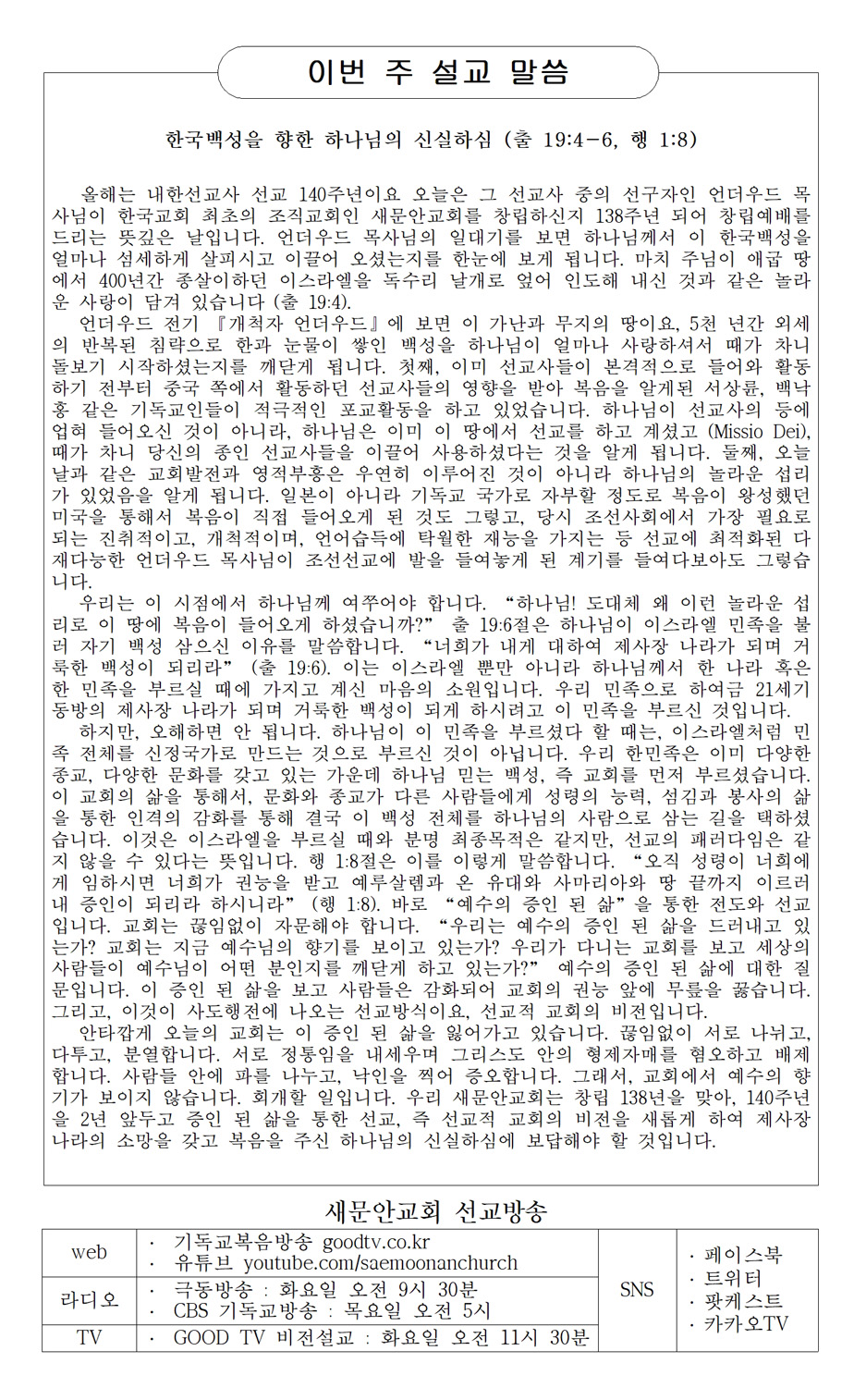 새문안 교회 표어