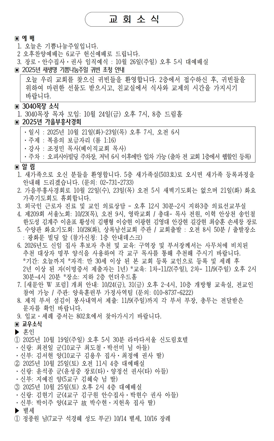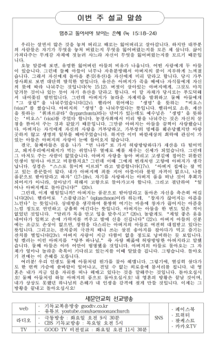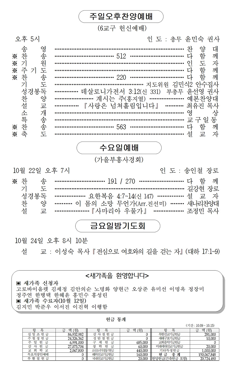 모이기를 힘써, 생명이 충만한 교회가 되게 하소서!