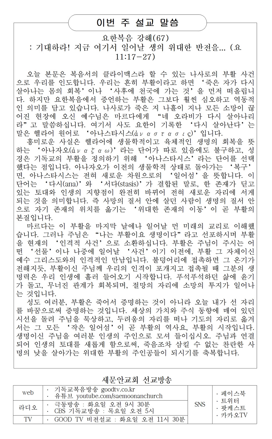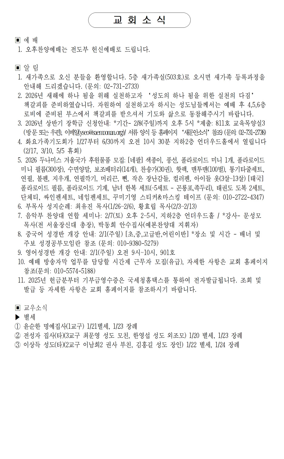 교회생활 안내