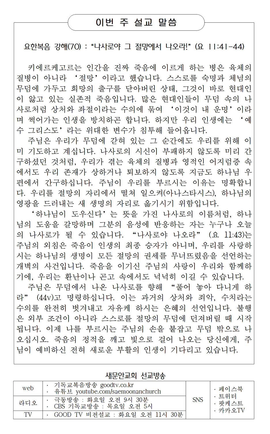모이기를 힘써, 생명이 충만한 교회가 되게 하소서!