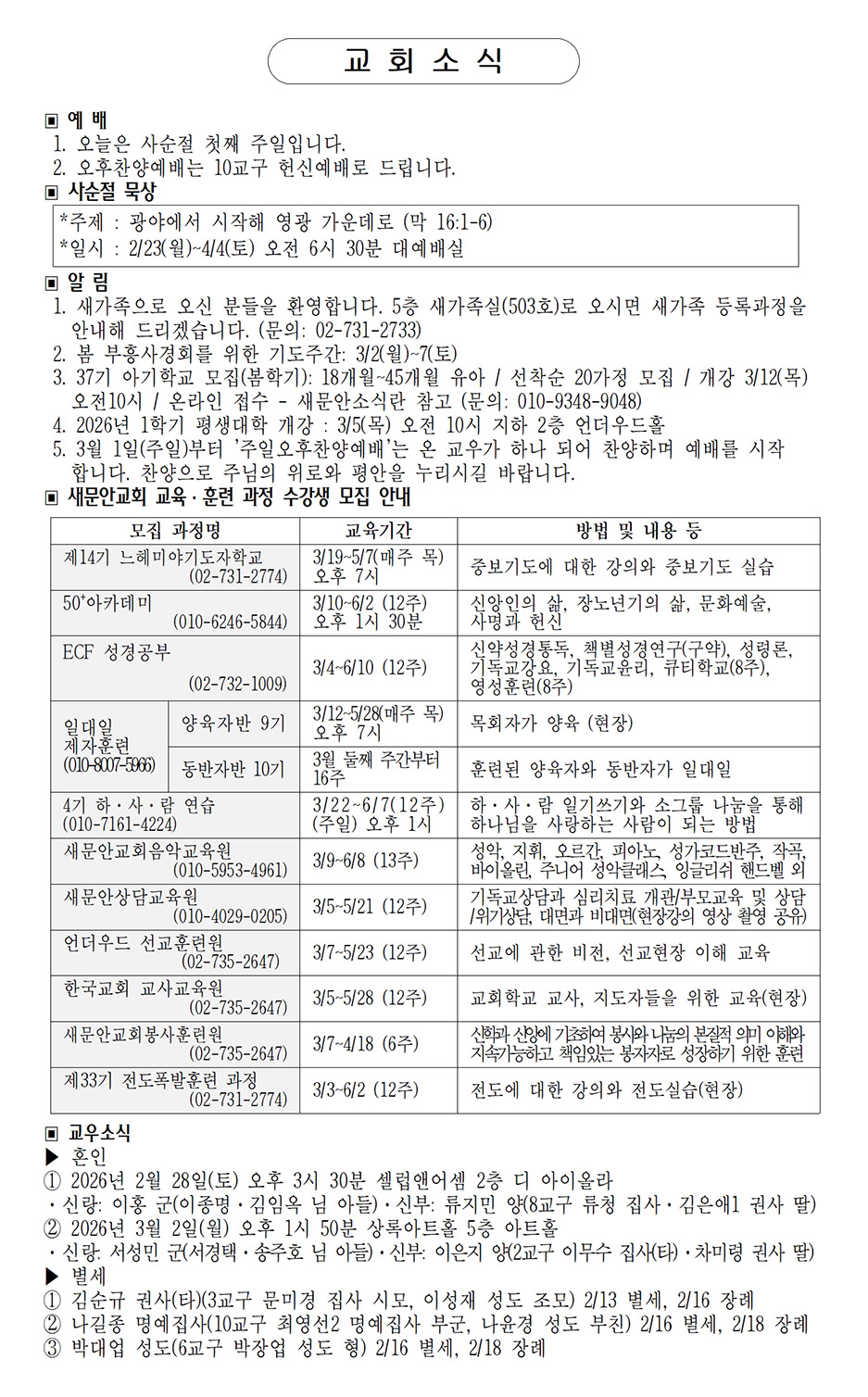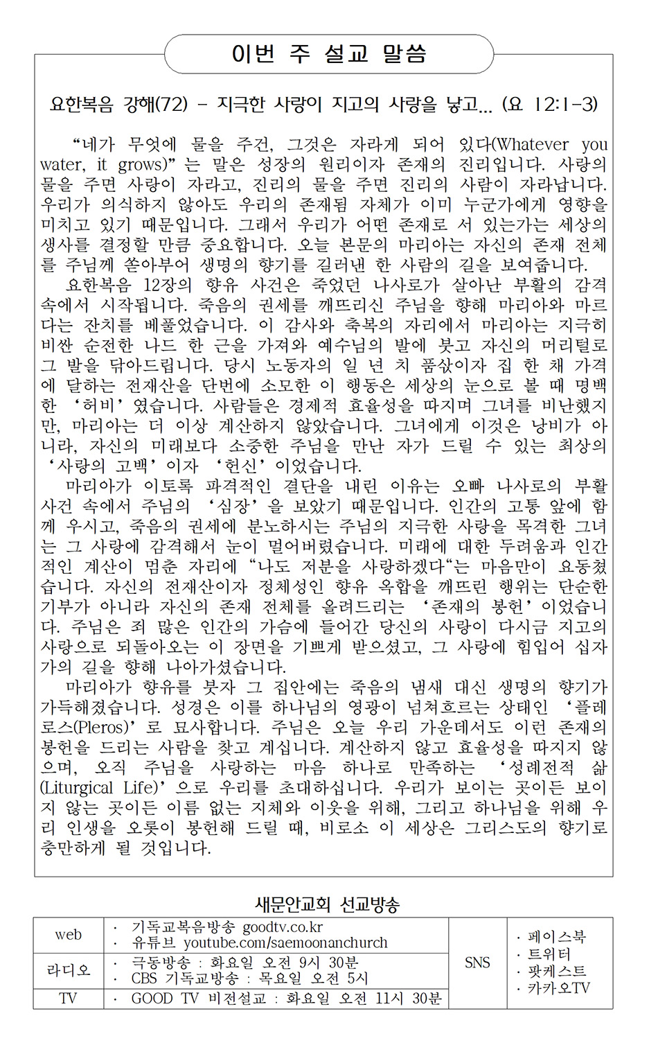 모이기를 힘써, 생명이 충만한 교회가 되게 하소서!