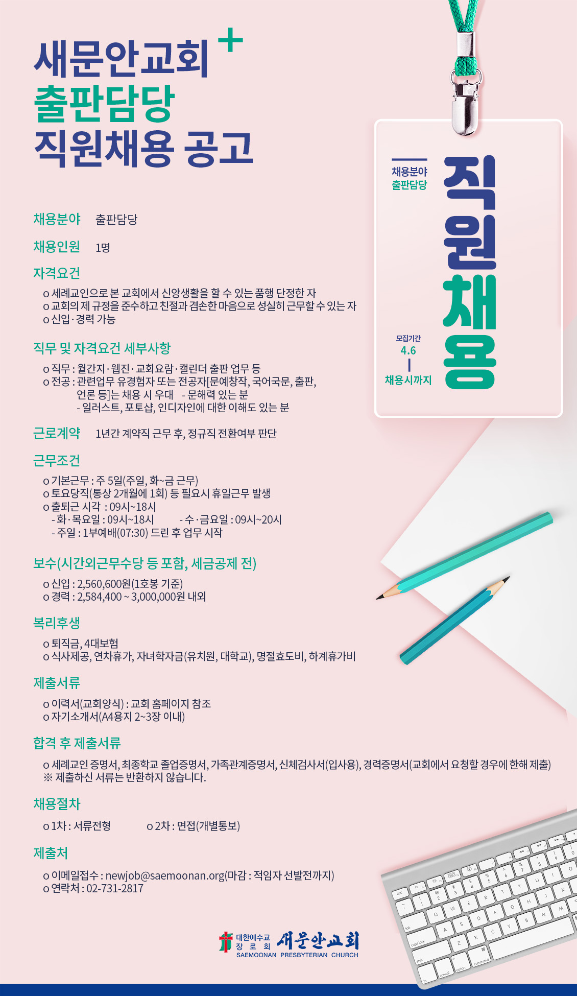 새문안교회 출판담당 직원채용 공고