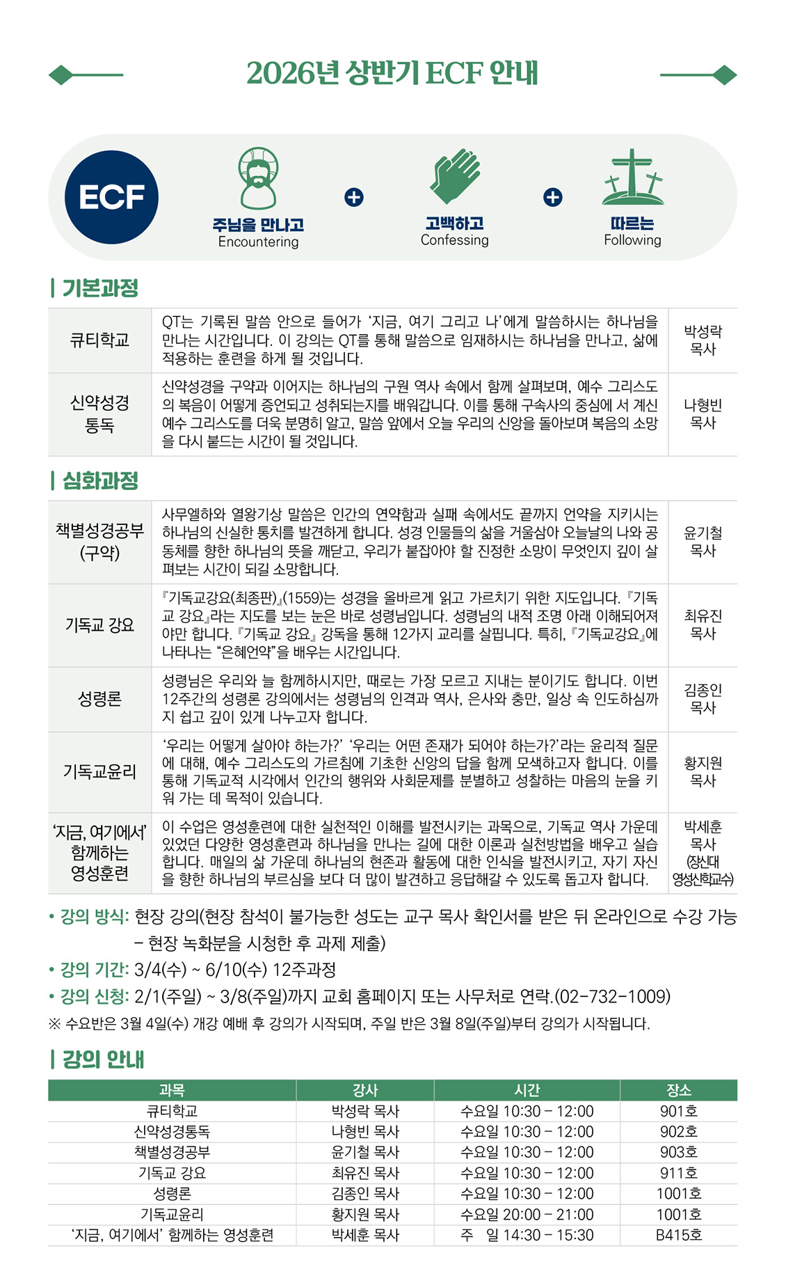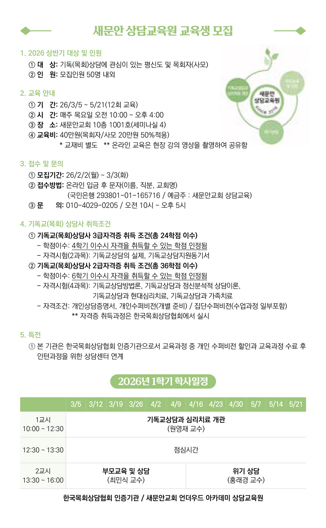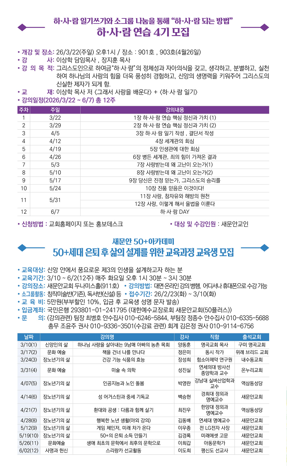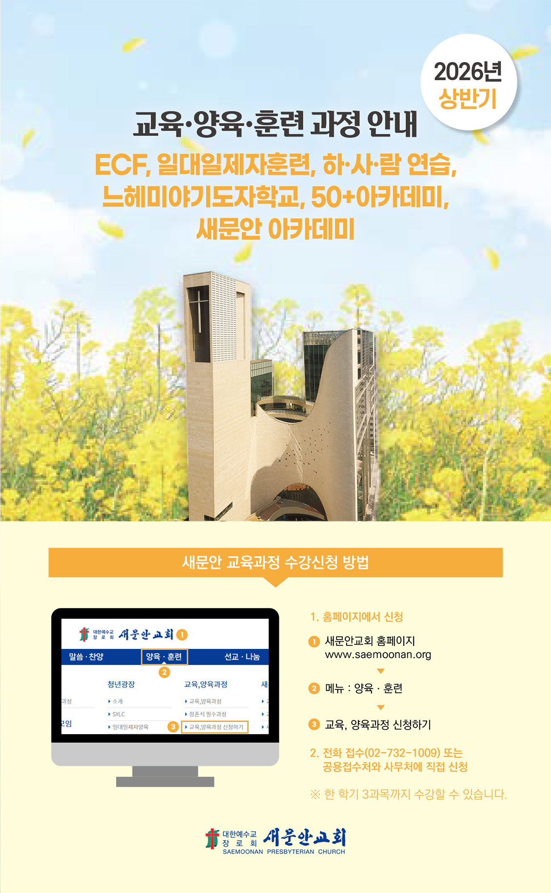 청장년교육부 새문안성경공부 안내 (2026년 1학기)