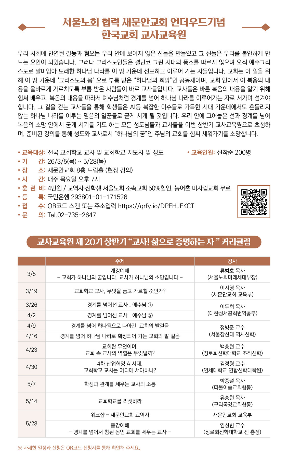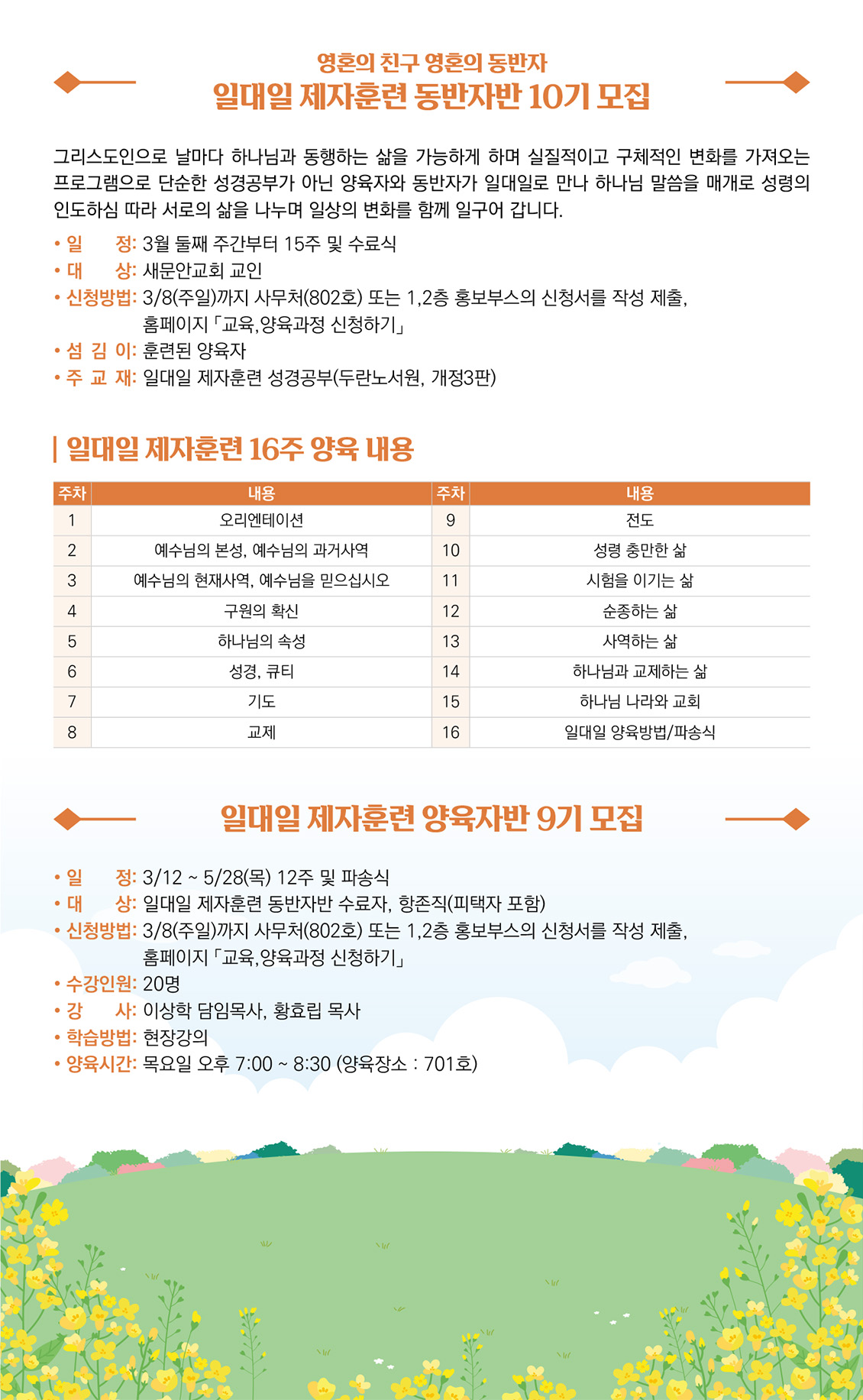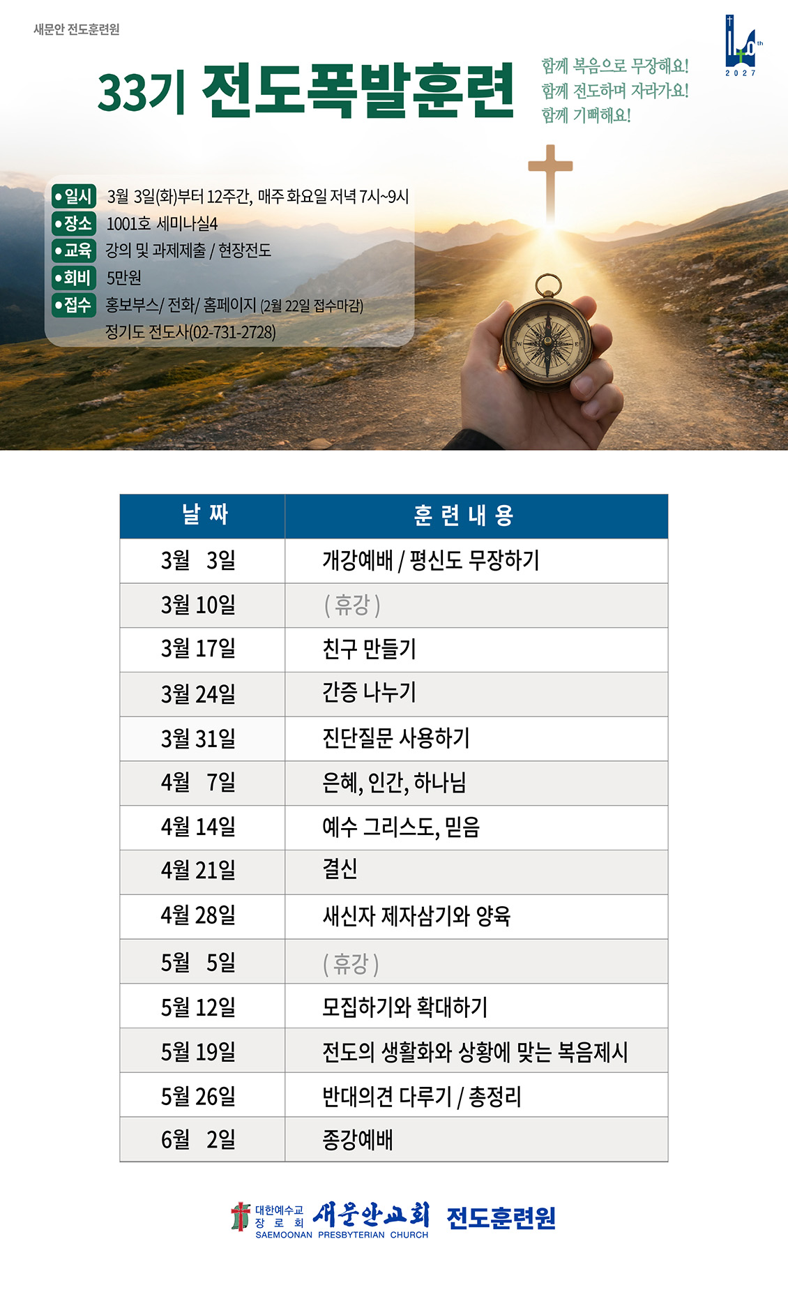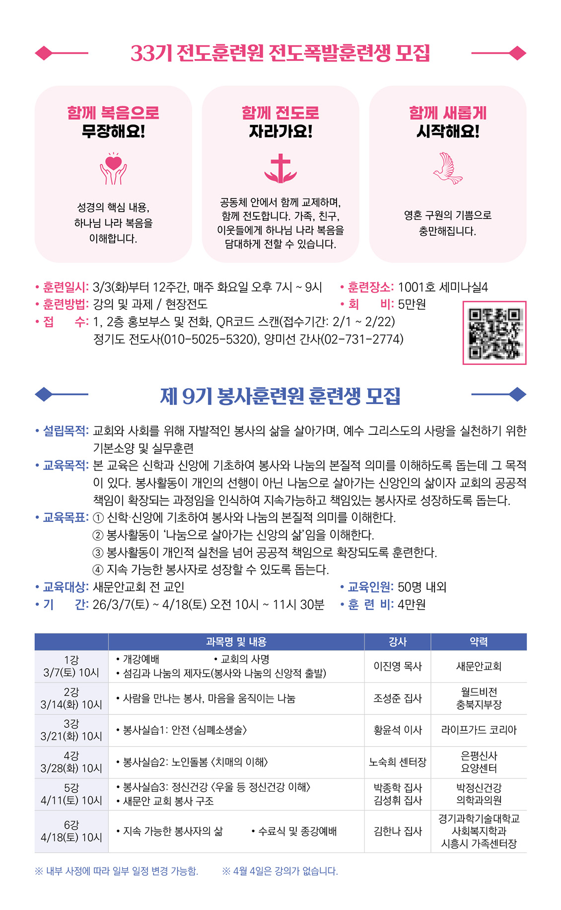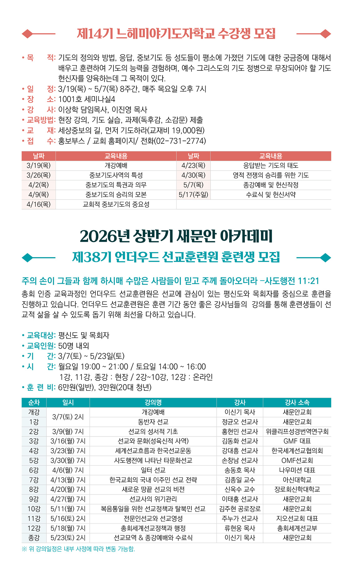 청장년교육부 새문안성경공부 안내 (2026년 1학기)