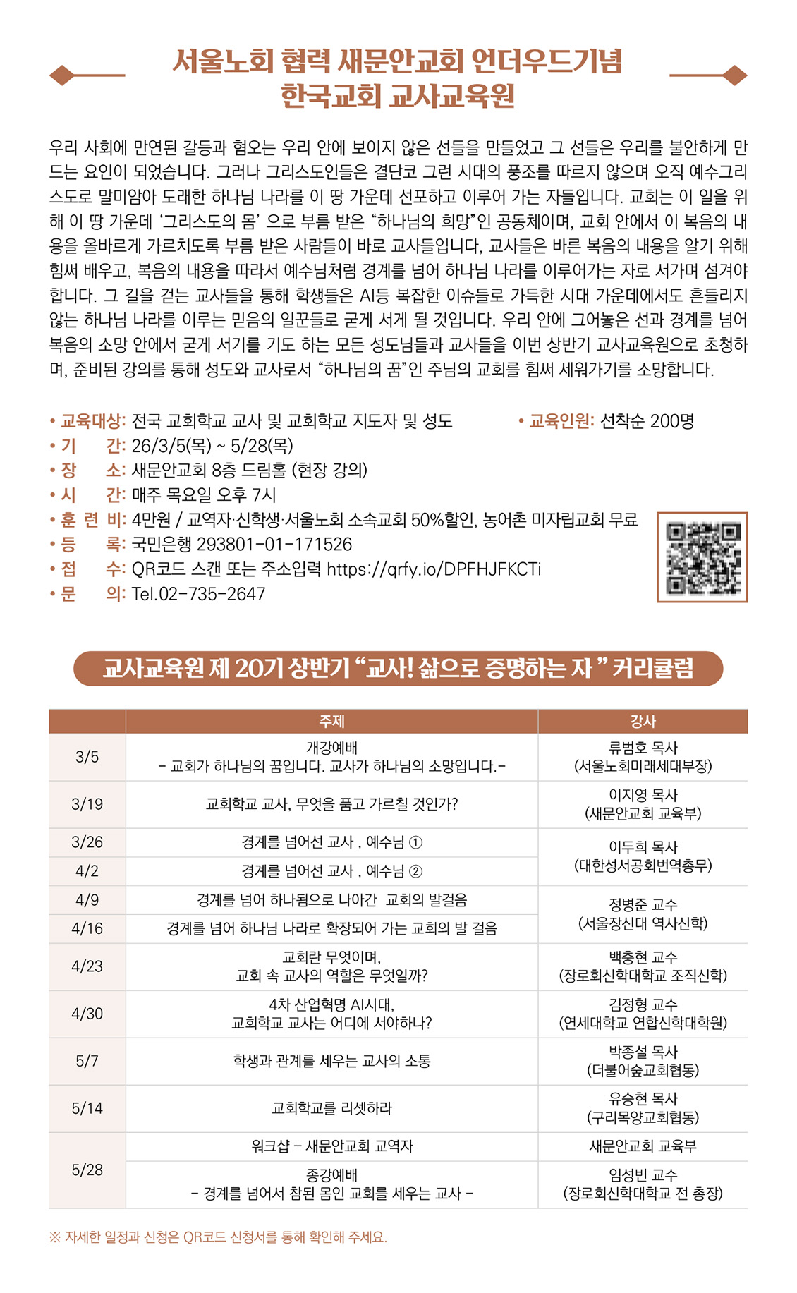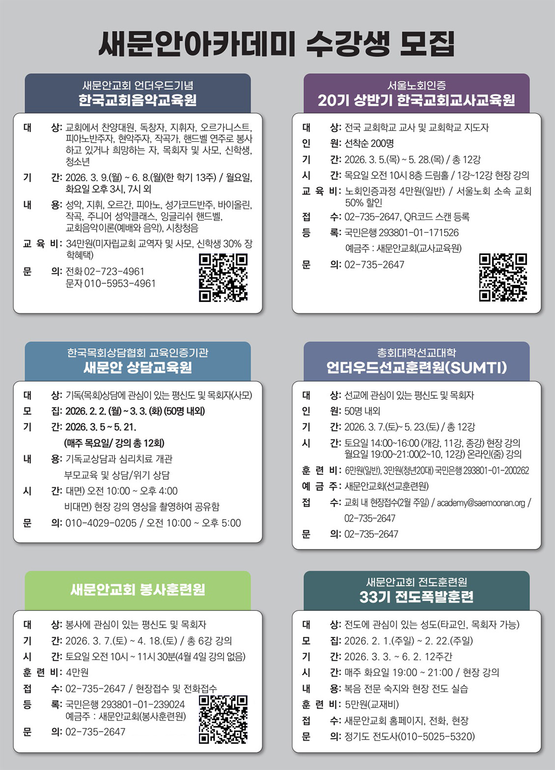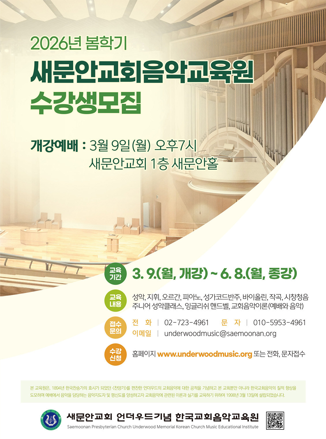 새문안교회음악교육원 수강생 모집(2026년 봄학기)