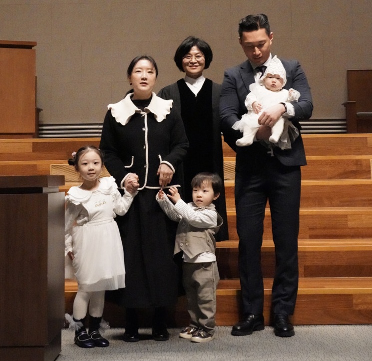 2026년 03월08일 (은평21) 심관용,조규리 집사의 셋째 심은하 아기의 첫나들이 축복기도를 이성숙 목사님께서 해 주셨습니다. 세 자녀 모두 하나님의 은혜 안에서 건강하게 잘 자라나기를 축복하고 축하합니다.