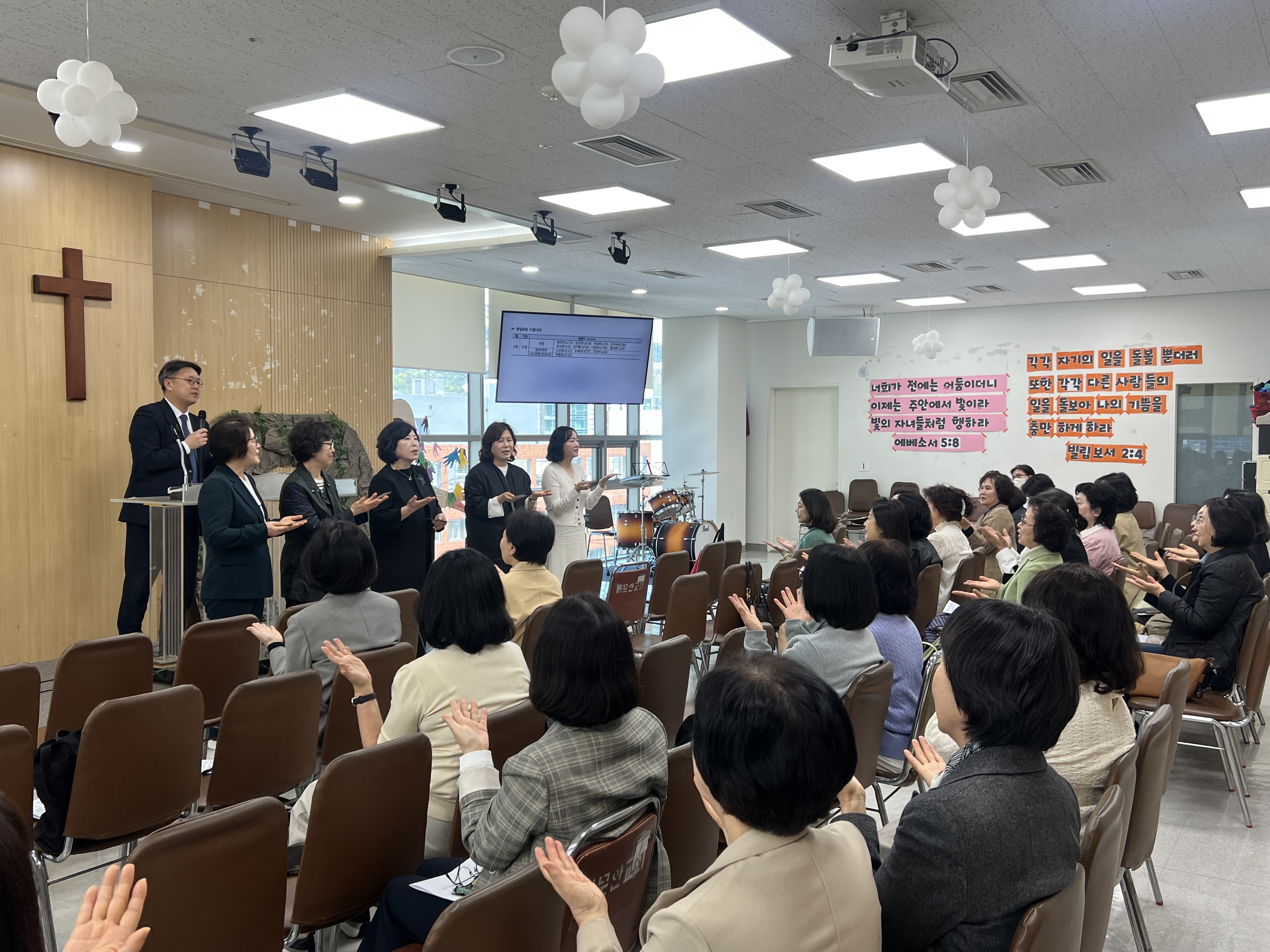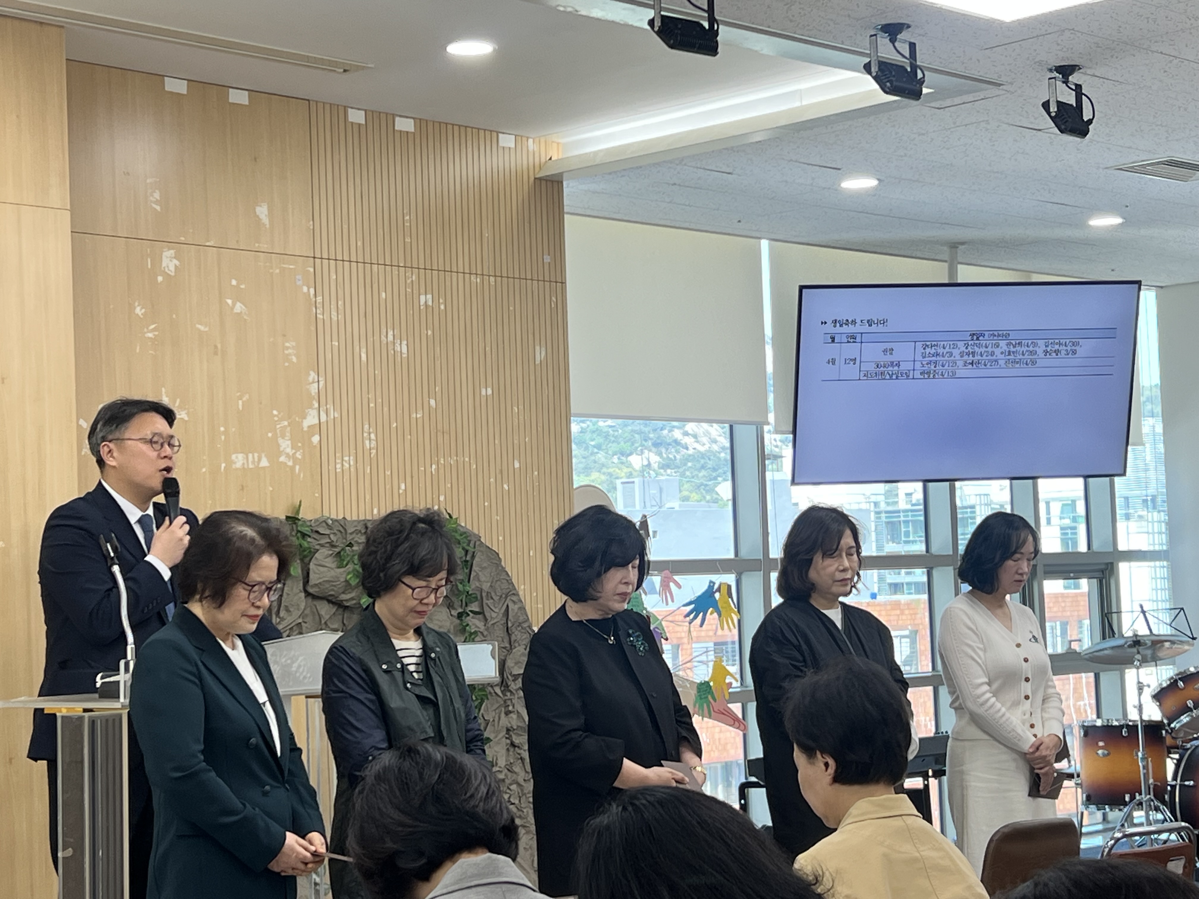 4월 권찰회는 우리 5교구 주관으로 이루어졌으며. 구역 공과교육후 이루어진 교구별 모임에서는 마태복음 6장의 말씀을 통해 영원히 소멸하지 않는 하나님의 옷을 입고 영원히 사라지지 않는 하나님을 의지하고 살아가는 인생이 되자는 장지훈 목사님의 설교와 권찰로 세워주신 은혜와 은총으로 채워주심에 대한 감사의 기도와 생일자들을 위한 축복기도가 이루어졌습니다
