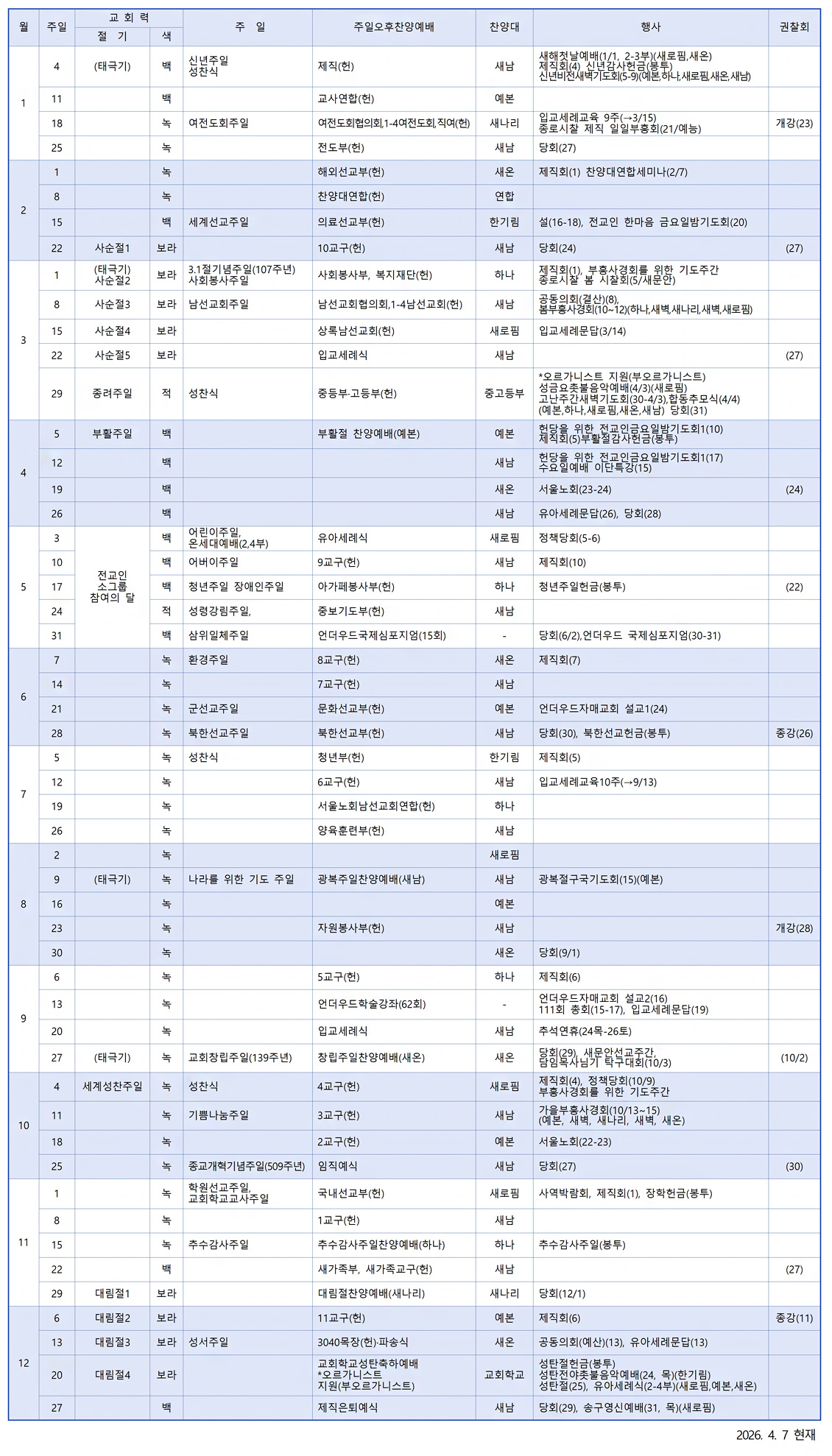 "성령으로 하나 되어 전심으로 주님을 섬기는 교회" (에베소서 4:3, 로마서 12:11)