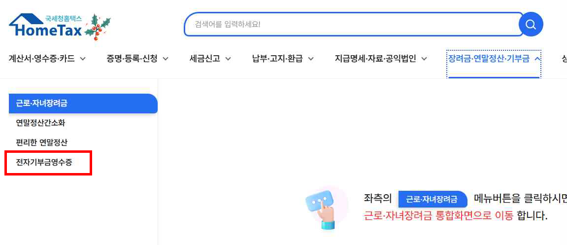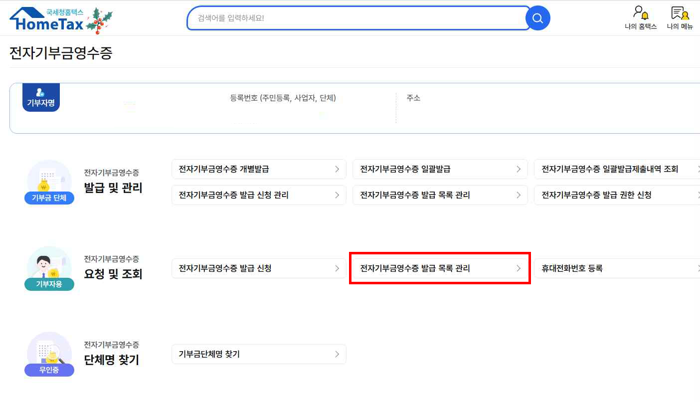 기부자는 국세청 홈택스를 통하여 전자기부금영수증 발급내역을 조회할 수 있고 연말정산 간소화 서비스에도 자동 반영되어 기부금영수증 제출 없이 기부금 공제가 가능한 제도입니다.