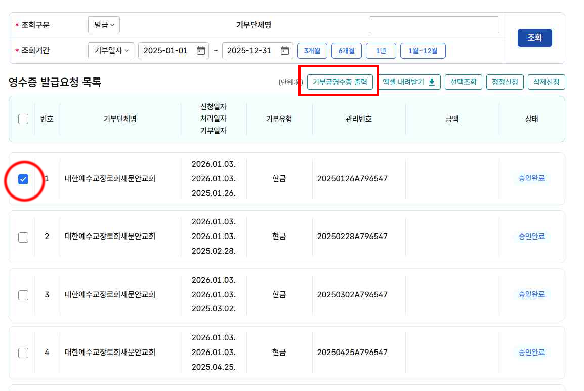 (※ 법인명의 발급을 원하실 경우, 법인 명의로 헌금해 주셔야 합니다.)